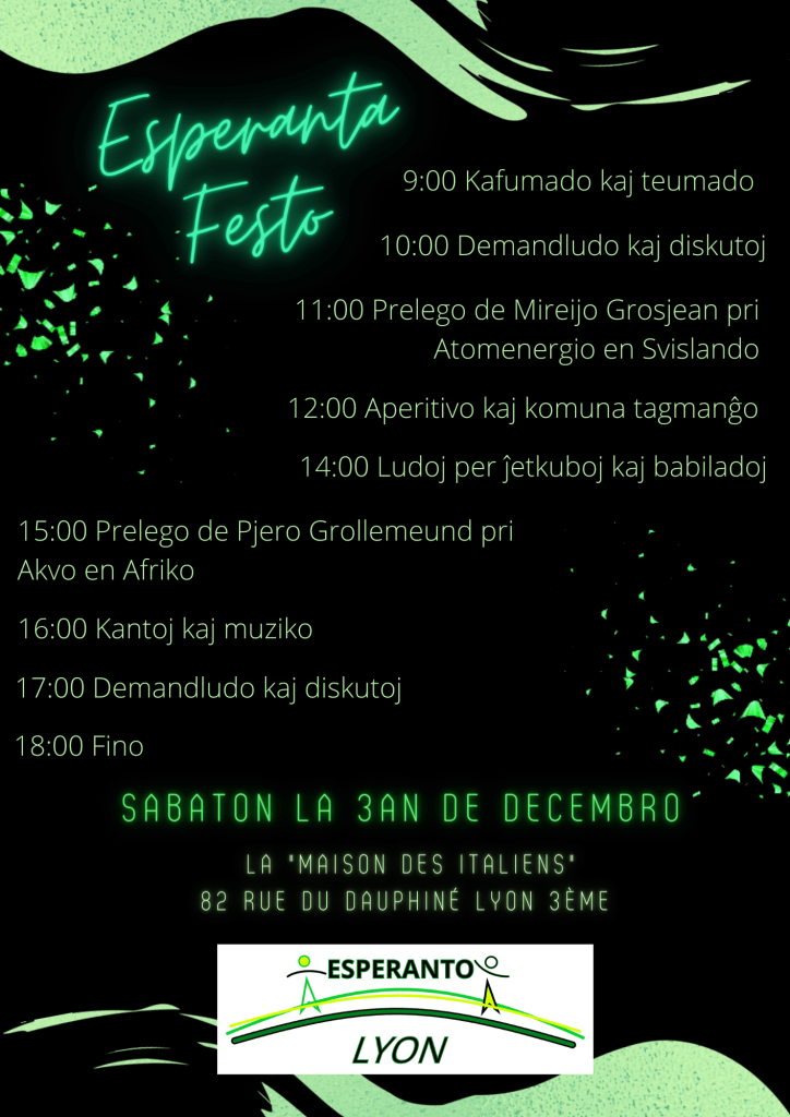 Nia asocio invitas vin al nia Esperanta Festo, Sabaton la 3an de decembro.