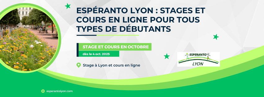Nous proposons un stage linguistique pour découvrir la langue internationale le samedi 4 octobre 2025, au KoToPo à Lyon 1, 14 Rue René Leynaud. Il a été spécialement conçu pour les personnes n’ayant jamais étudié la langue, ou qui souhaitent en revoir les bases. Ce stage est gratuit pour les membres d’Espéranto Lyon. Pour les non adhérents, une participation à hauteur de 20 EUR afin de participer aux frais engagés. Comment y participer ? en nous contactant tout simplement ! C’est par ici…